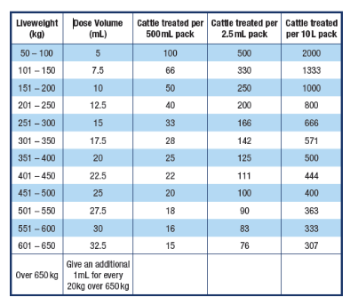 The convenience of the low volume formulation means that Imax CD will treat the same number of cattle at half the volume of other ML pour-ons. The concentrated dose means large cattle (600kg liveweight) can be dosed with one squeeze of a standard 30mL pour-on applicator. With less weight to handle, Imax CD offers easier application, transport and storage.